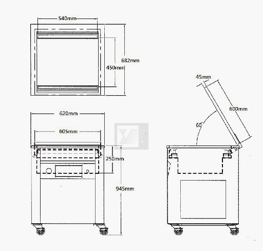 ✓ Kích thước buồng hút: 360x385x165 mm; Kích thước máy: 370x459x460 mm; Trọng lượng máy: 45 kg
