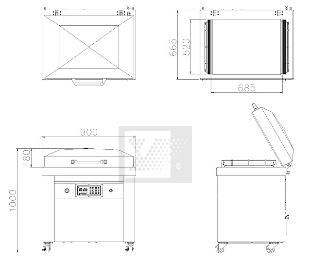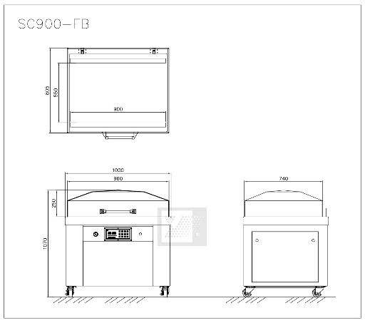 ✓ Kích thước buồng hút: 860x605x180 mm; Kích thước máy: 900×665x1000 mm; Trọng lượng máy: 196 kg